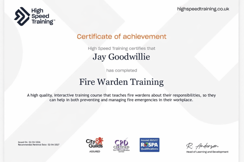 First Aid and Fire Warden training renewed – discipline doesn’t stop at the kettlebell. 🔥